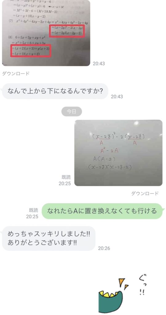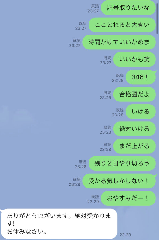 上が質問対応、下が受験直前期の声かけ(テンション高くて恥ずかしいですね…笑)になります。